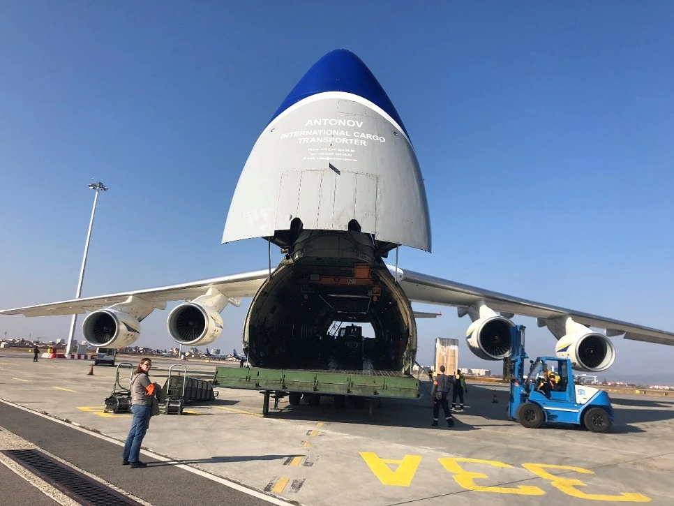 A huge an124-100 Ruslan transport aircraft, Ukrainian Airline Antonov, landed at Sofia Airport recently.