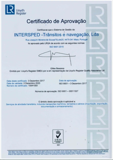 Intersped ISO 901/2015 Certificate