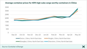 Container xChange recently unveiled its June container market forecaster, revealing trends and insights that are shaping the global container shipping market. The forecaster highlights the dramatic rise in container prices in China recently, which surged by 45% in May. Meanwhile, container prices have remained relatively stable in the US and Europe.