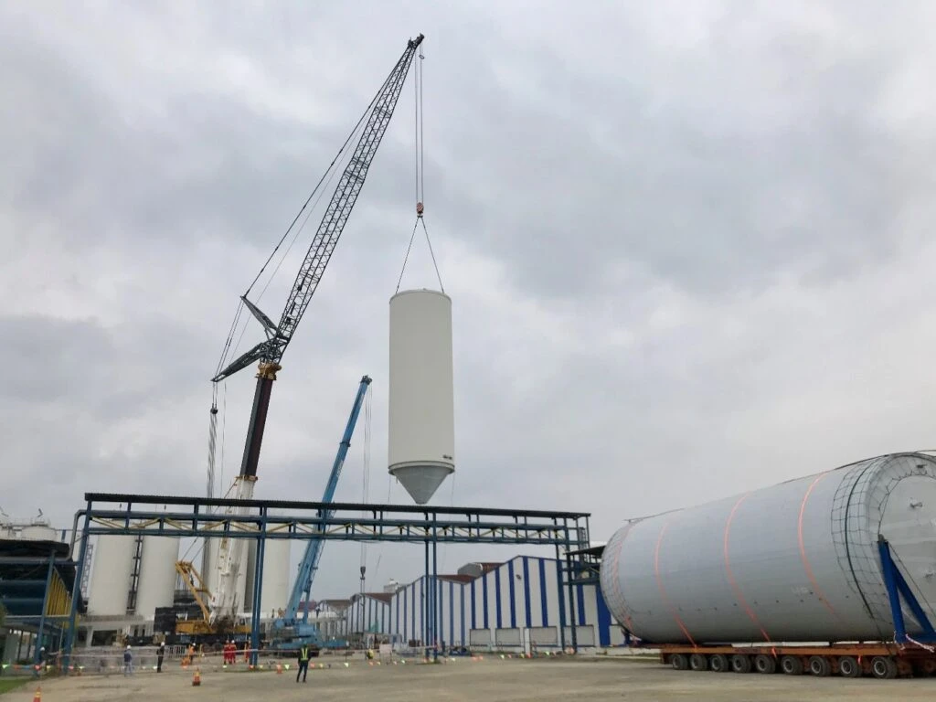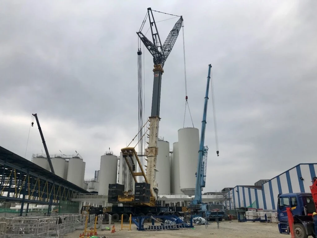 2 cranes were used for lifting at the site (the biggest weighing 800 tons)